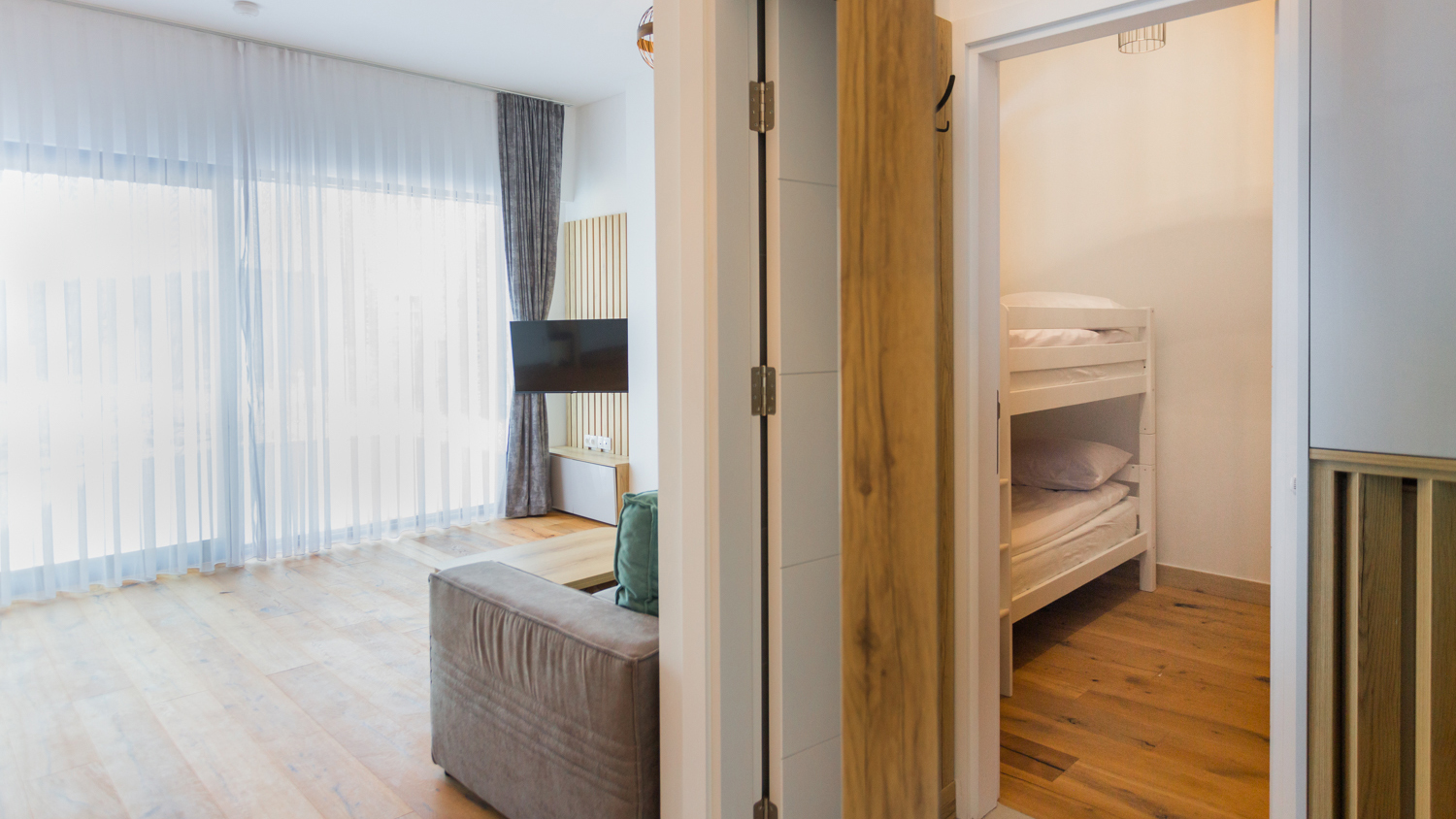 Moderno opremljeni komforni apartman sa dvije odvojene spavaće sobe, velikim dnevnim boravkom koji je idealan za porodice sa djecom. Ovdje će vas očarati savršen pogled na planinu i udobnost kojim odiše prostor. U apartmanu mogu boraviti do 4 osobe.