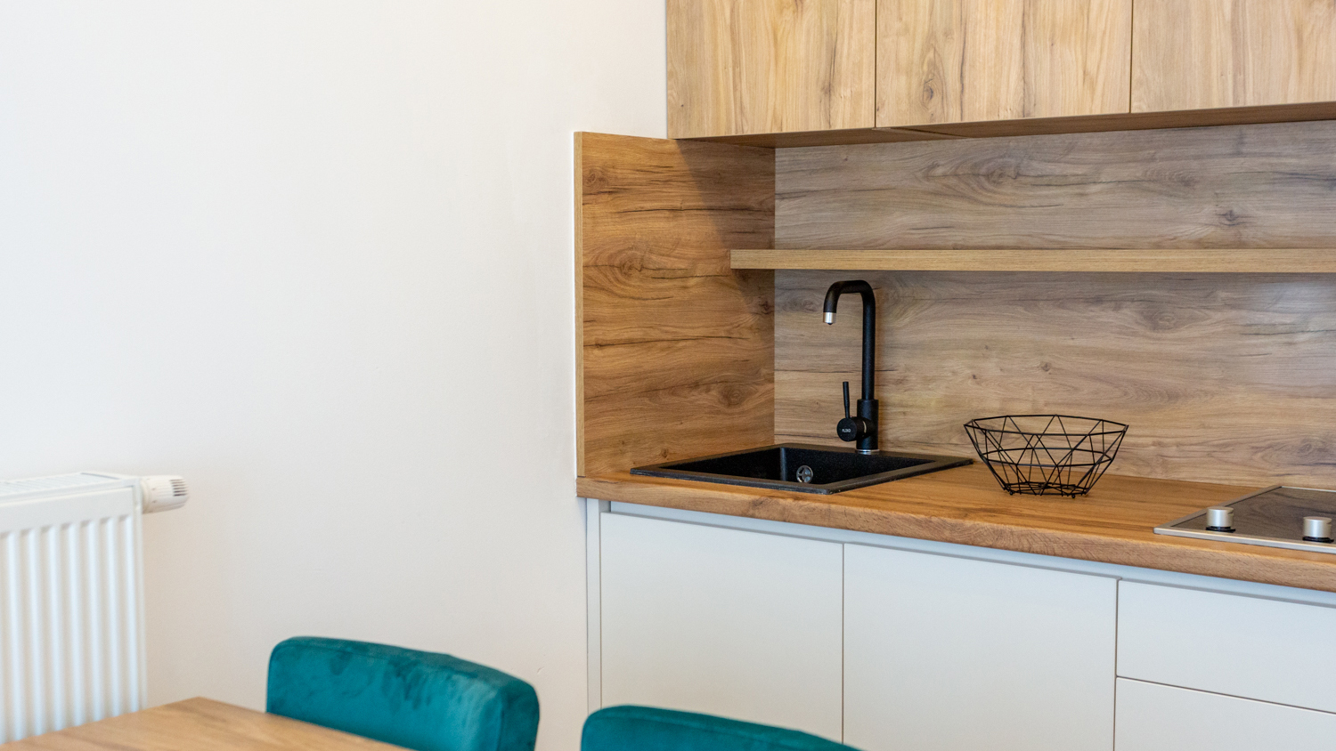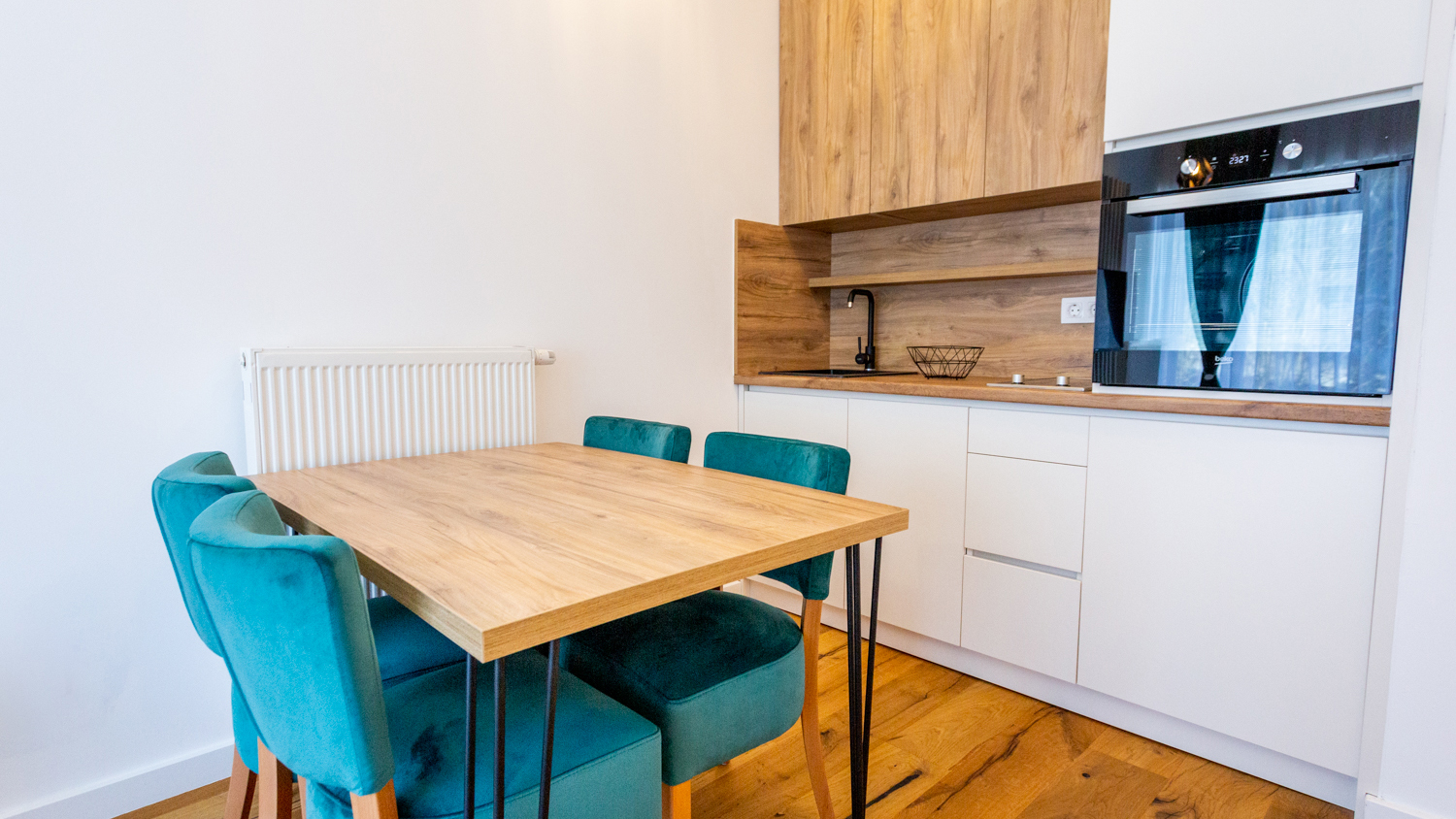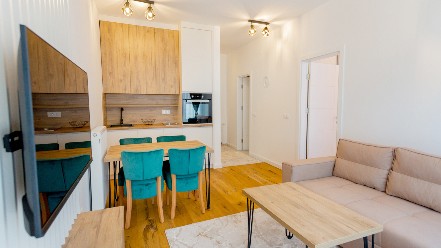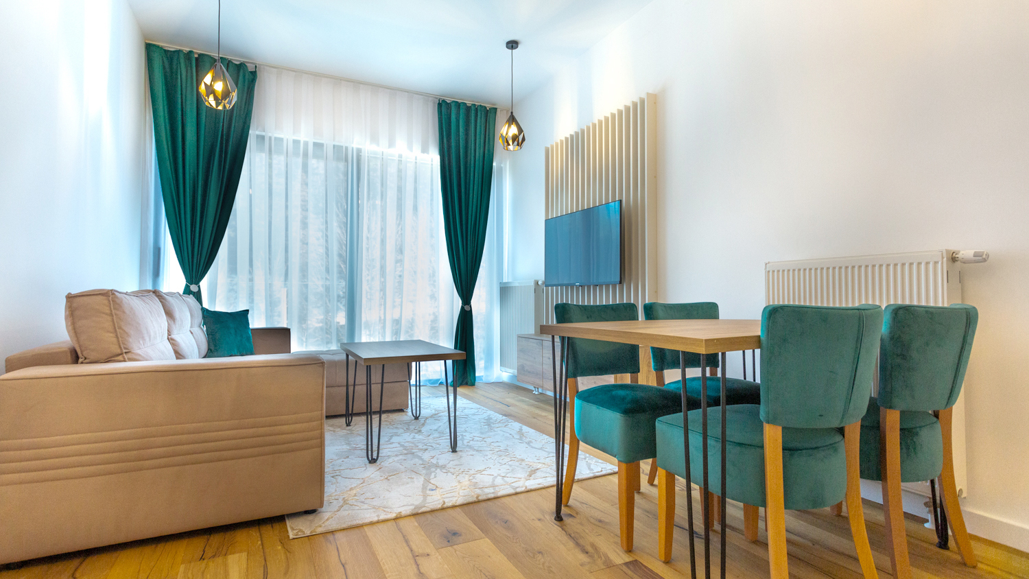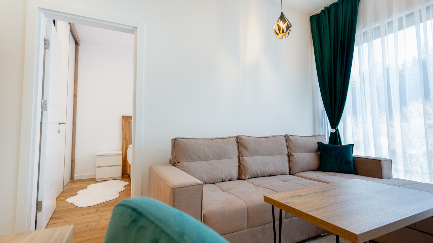 Ekskluzivno opremljeni enterijer podređen vašim potrebama sa zasebnom spavaćom sobom i dnevnim boravkom sa sofom, te opremljenom kuhinjom. Očarati će vas svojom udobnošću i prekrasnim pogledom na planinu. U apartmanu mogu boraviti do 4 osobe.