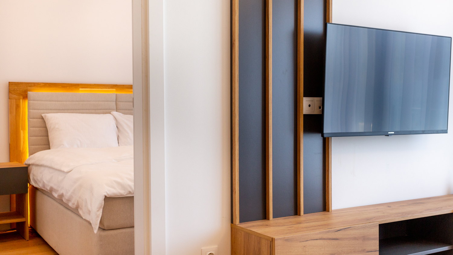 Apartman sa zasebnom spavaćom sobom i pogledom na planinu.