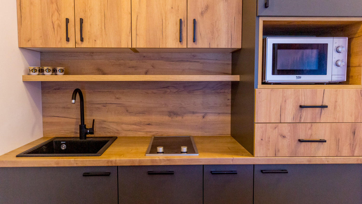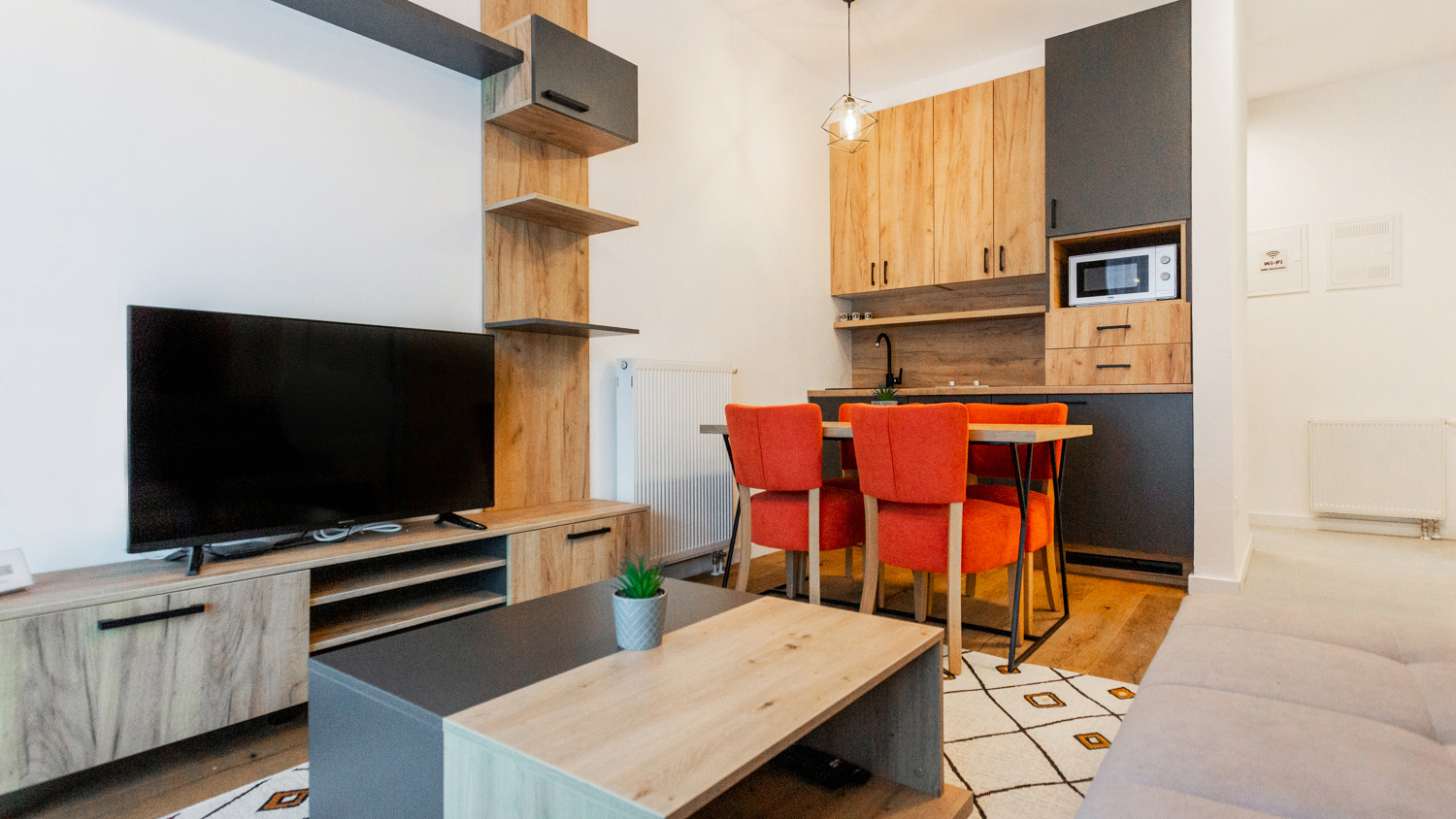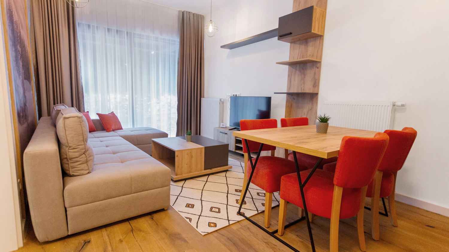Luksuzno opremljeni enterijer podređen vašim potrebama sa zasebnom spavaćom sobom i dnevnim boravkom sa sofom, te opremljenom kuhinjom. Očarati će vas svojom udobnošću i prekrasnim pogledom na planinu. U apartmanu mogu boraviti do 5 osobe.Ekskluzivno opremljeni enterijer podređen vašim potrebama sa zasebnom spavaćom sobom i dnevnim boravkom sa sofom, te opremljenom kuhinjom. Očarati će vas svojom udobnošću i prekrasnim pogledom na planinu. U apartmanu mogu boraviti do 4 osobe.