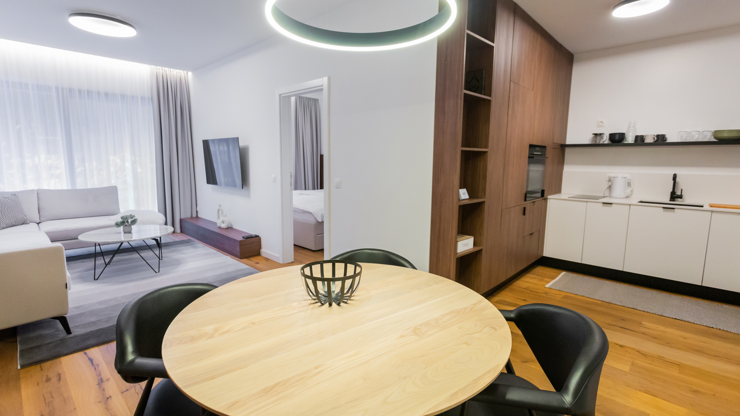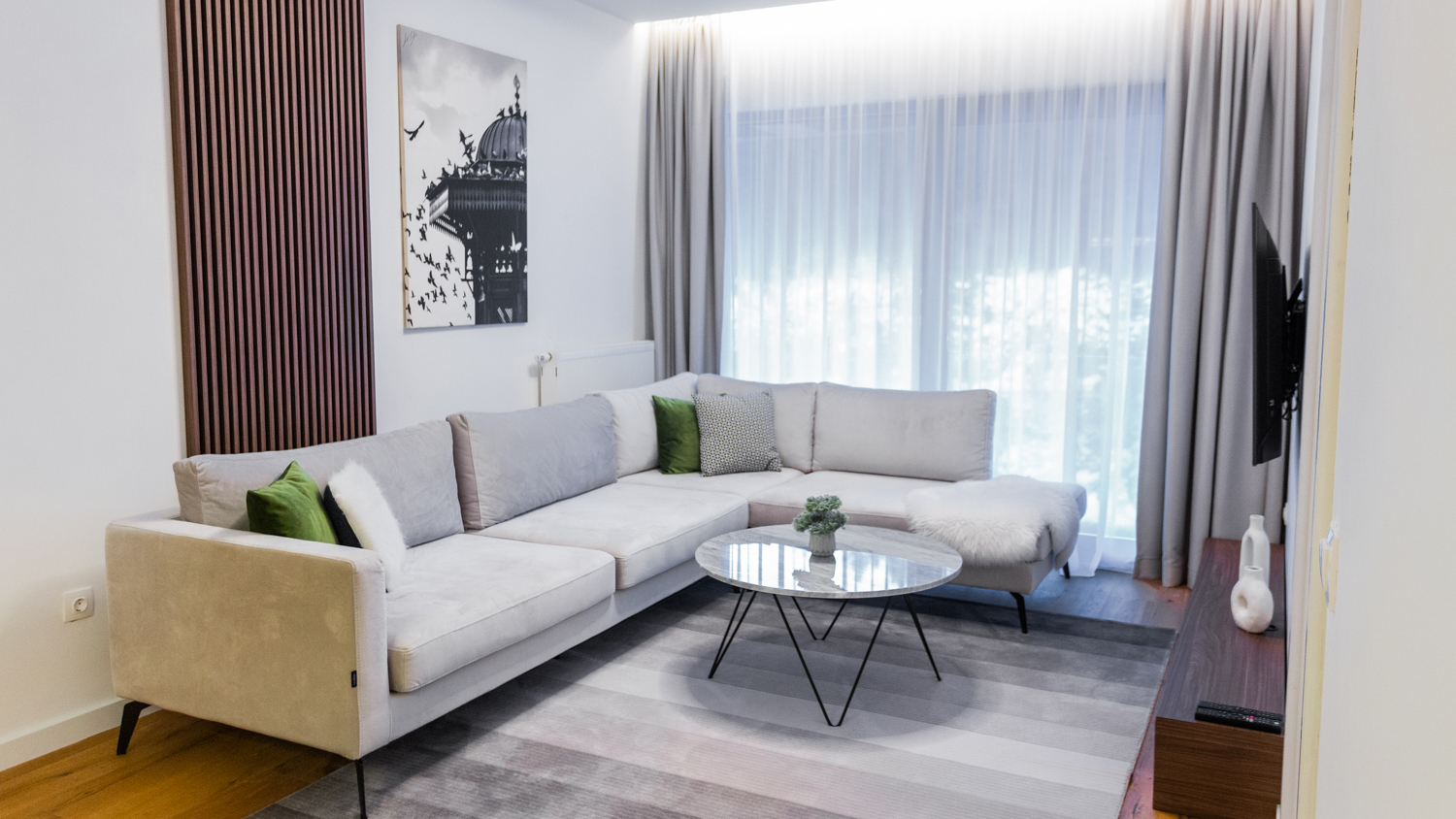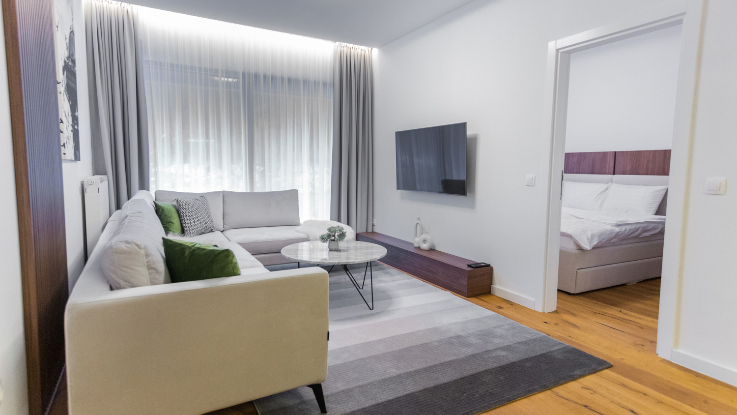 Ekskluzivno opremljeni enterijer podređen vašim potrebama sa zasebnom spavaćom sobom i dnevnim boravkom sa sofom, te opremljenom kuhinjom. Očarati će vas svojom udobnošću i prekrasnim pogledom na planinu. U apartmanu mogu boraviti do 4 osobe.