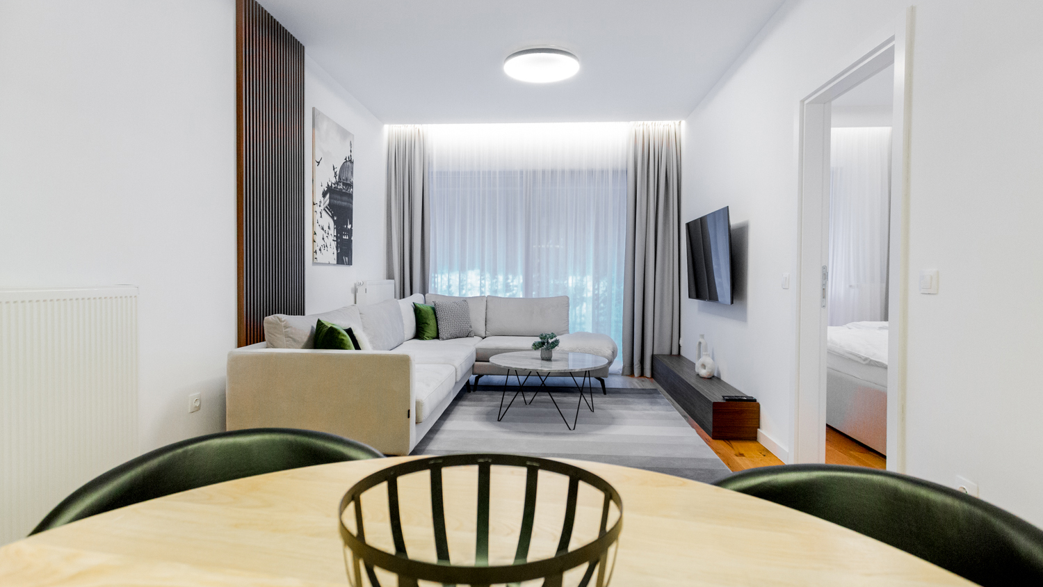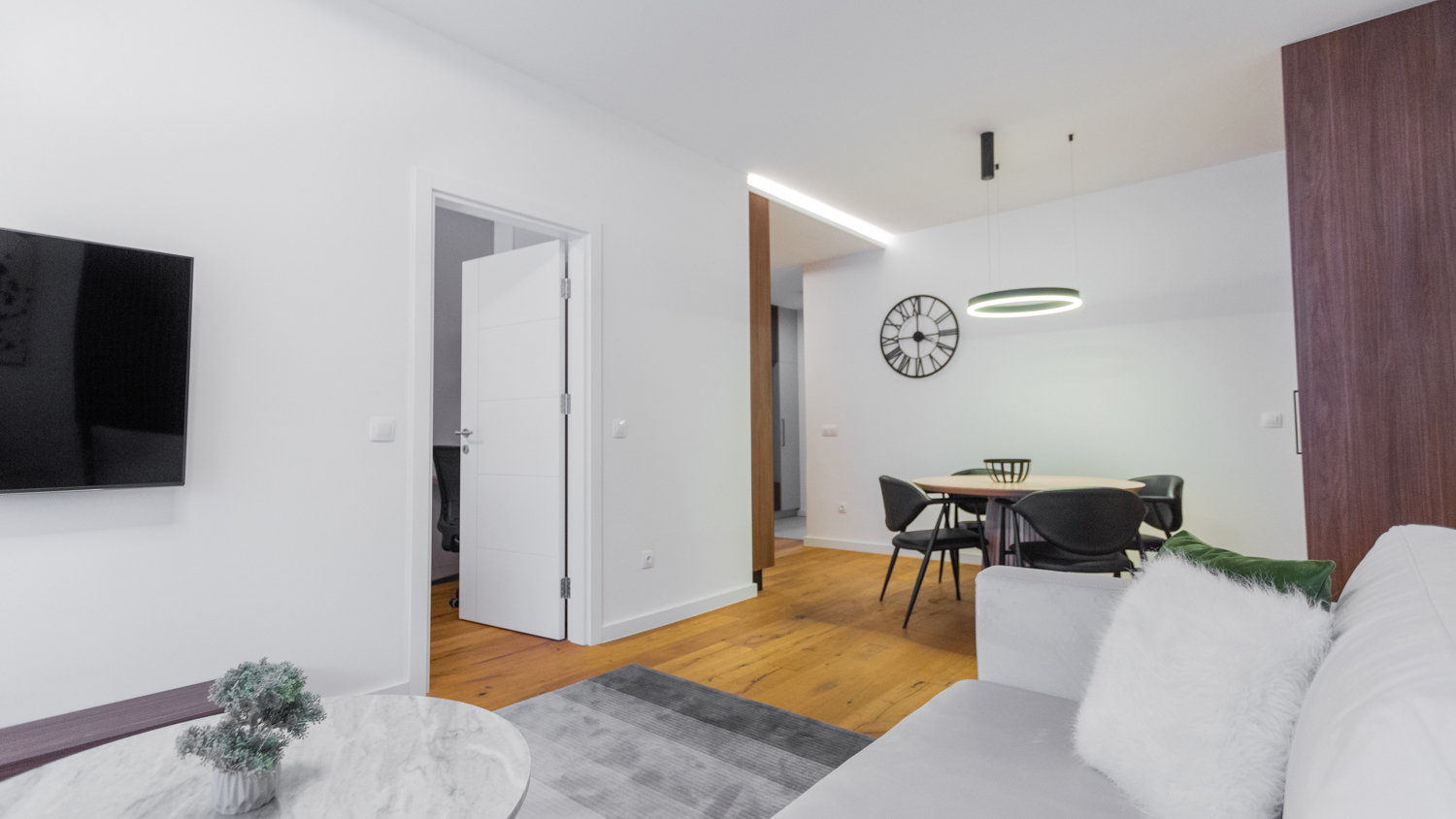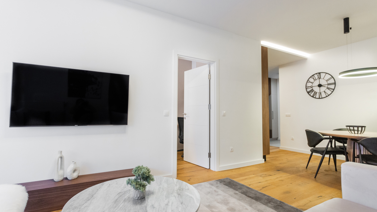 Ekskluzivno opremljeni enterijer podređen vašim potrebama sa zasebnom spavaćom sobom i dnevnim boravkom sa sofom, te opremljenom kuhinjom. Očarati će vas svojom udobnošću i prekrasnim pogledom na planinu. U apartmanu mogu boraviti do 4 osobe.
