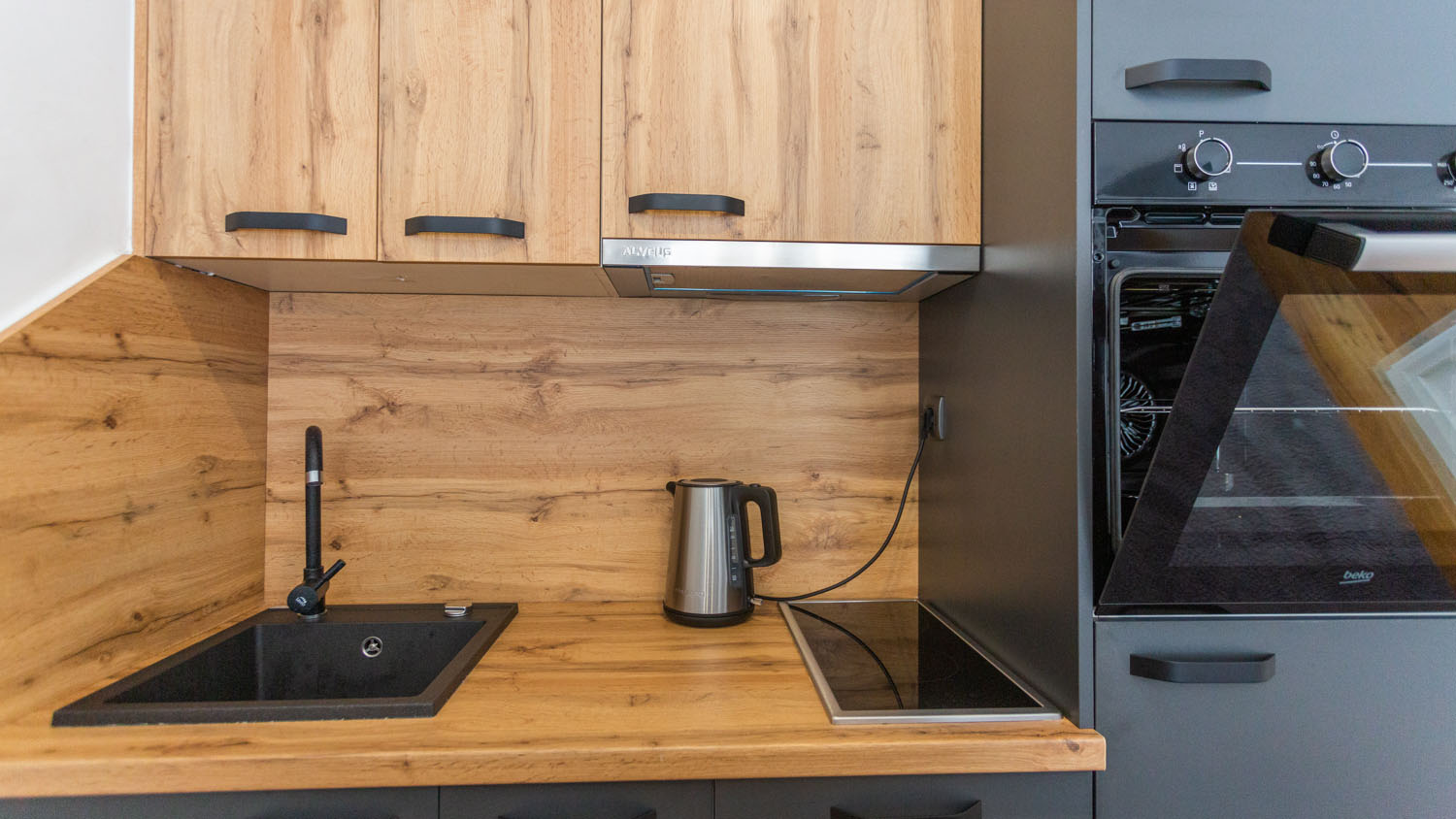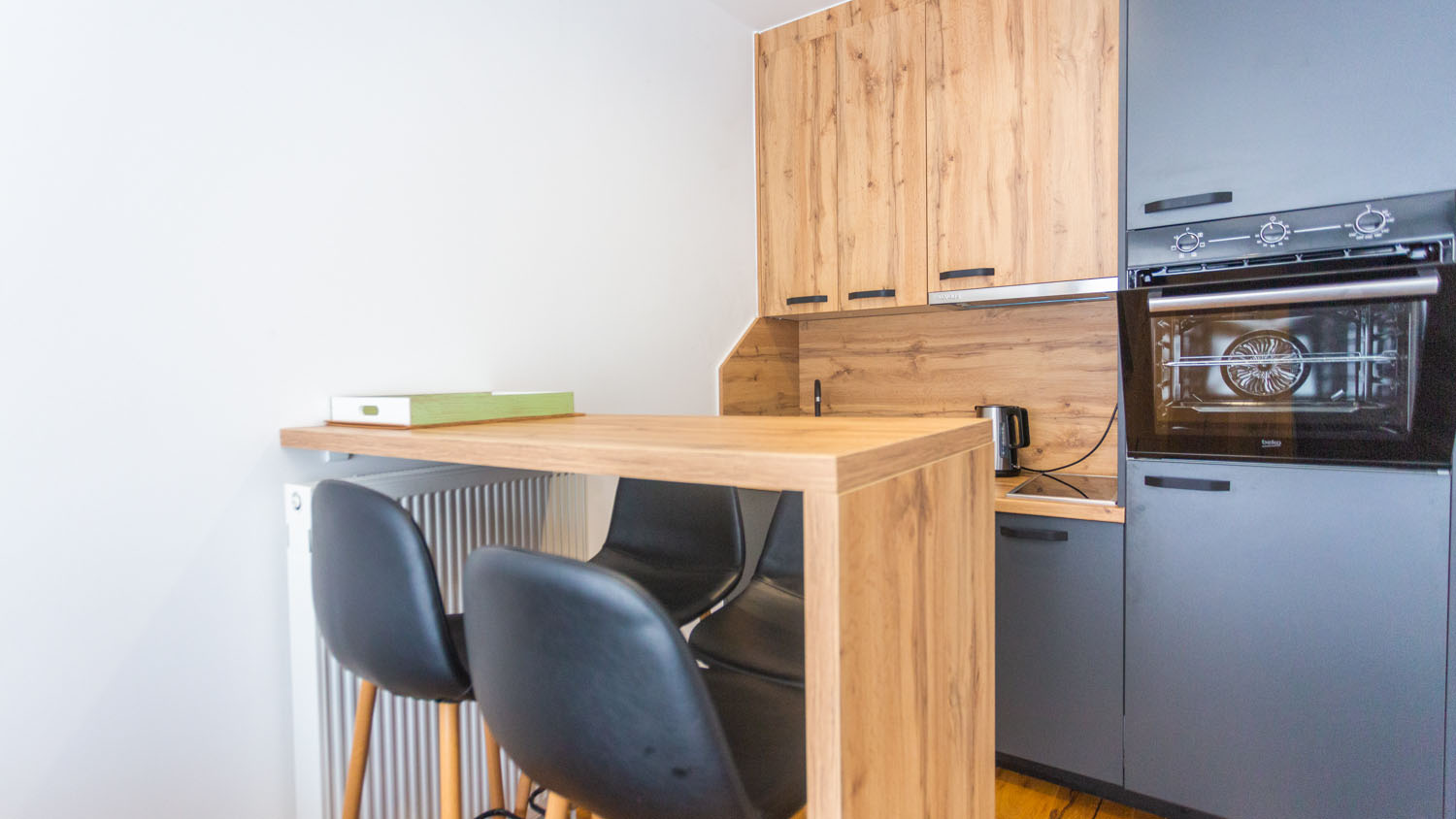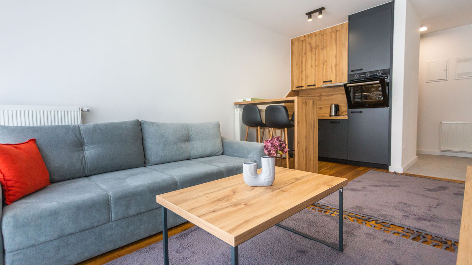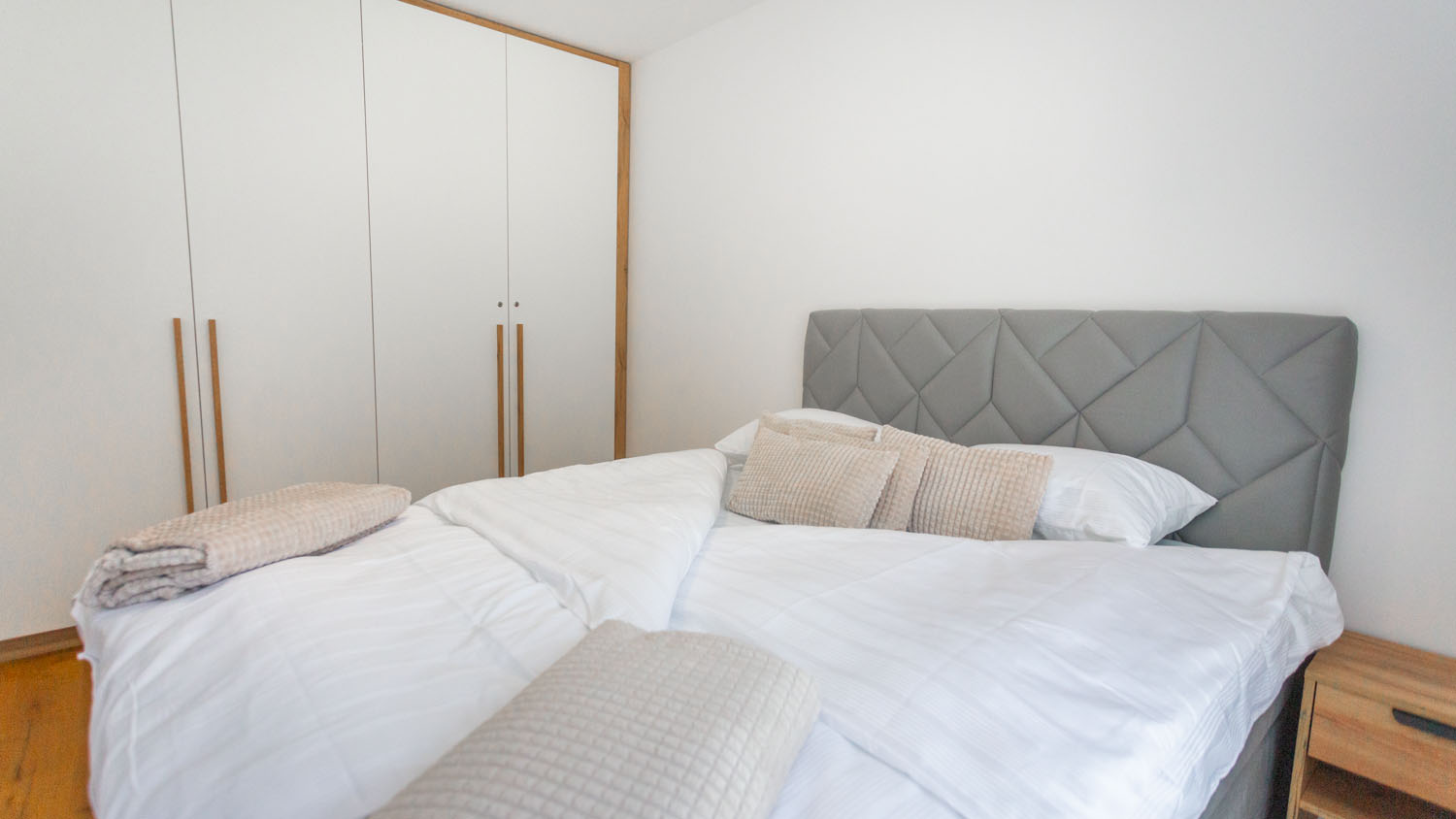 Elegantno opremljeni enterijer koji će vas očarati svojom udobnošću s prekrasnim pogledom na planinu. Apartman sa 1 zidnim krevetom, kupatilom i opremljenom kuhinjom. U apartmanu mogu boraviti do 2 osobe.Ekskluzivno opremljeni enterijer podređen vašim potrebama sa zasebnom spavaćom sobom i dnevnim boravkom sa sofom na razvlačenje, te opremljenom kuhinjom. Očarati će Vas svojom udobnošću i prekrasnim pogledom na planinu. U apartmanu mogu boraviti do 3 osobe.