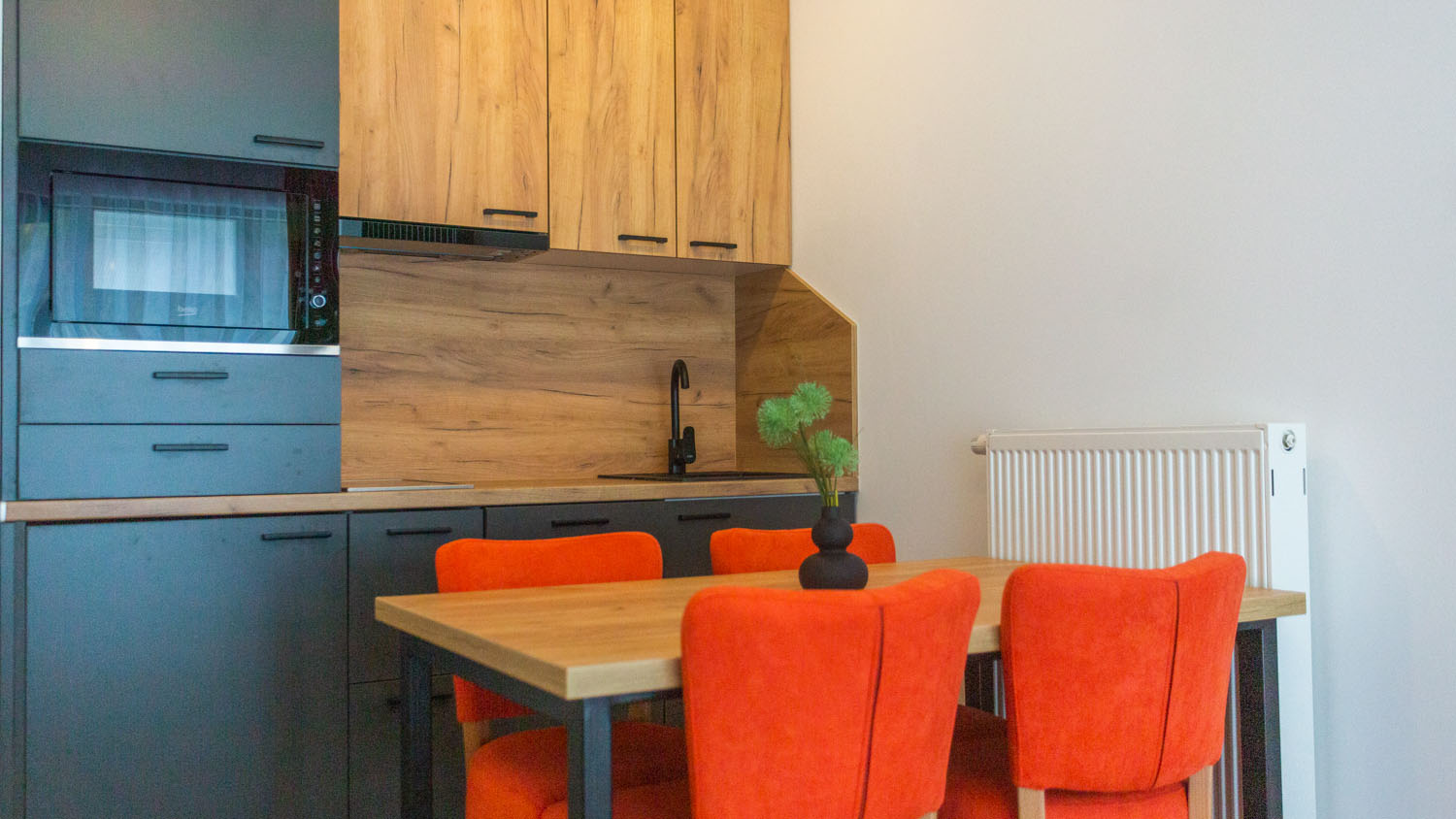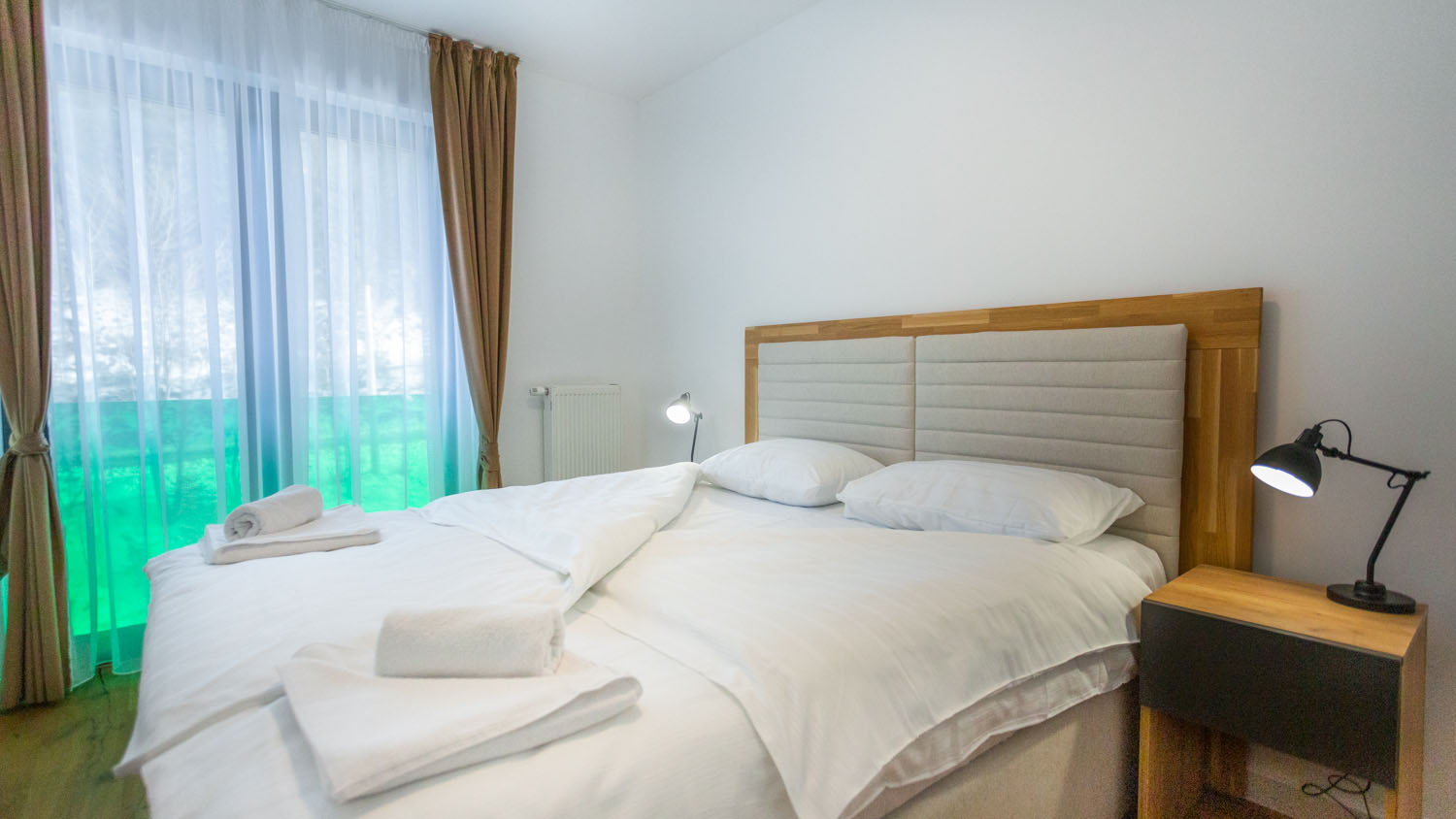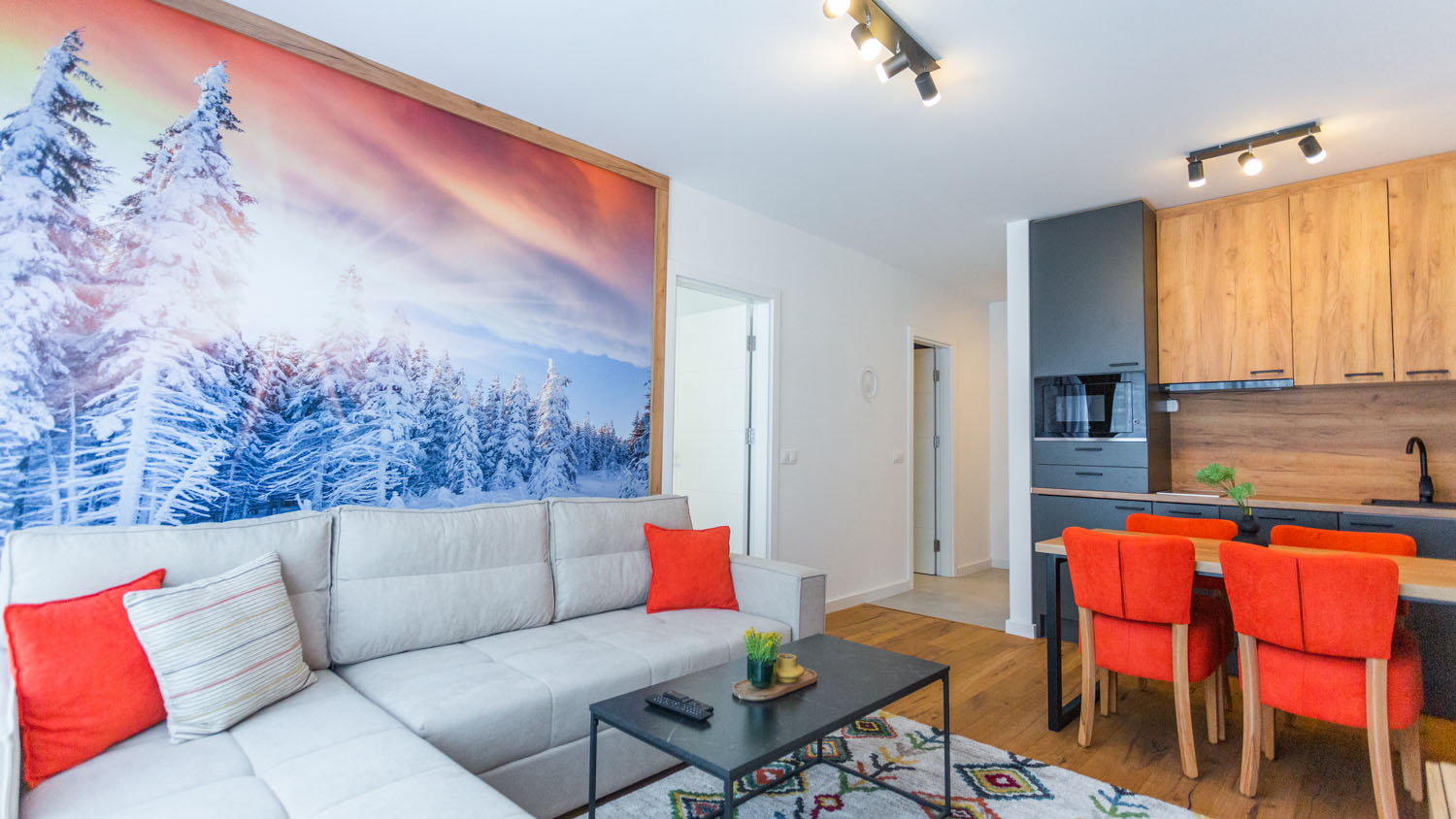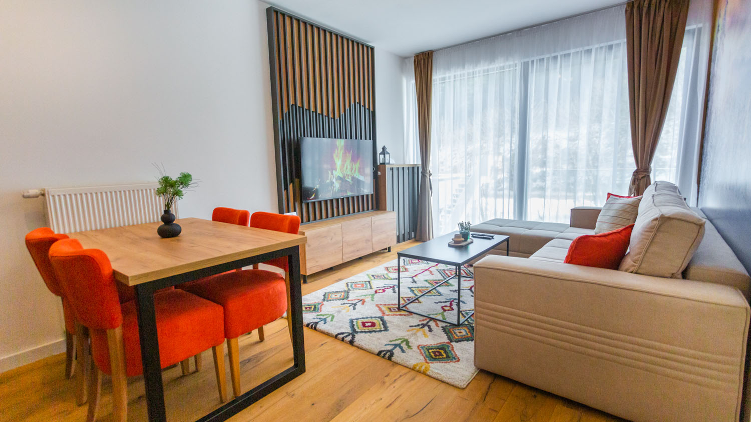 kskluzivno opremljeni enterijer podređen vašim potrebama sa zasebnom spavaćom sobom i dnevnim boravkom sa sofom na razvlačenje, te opremljenom kuhinjom. Očarati će vas svojom udobnošću i prekrasnim pogledom na planinu. U apartmanu mogu boraviti do 4 osobe.